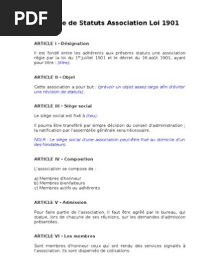Statuts Association 1901 Pdf Conseil D Administration Loi
